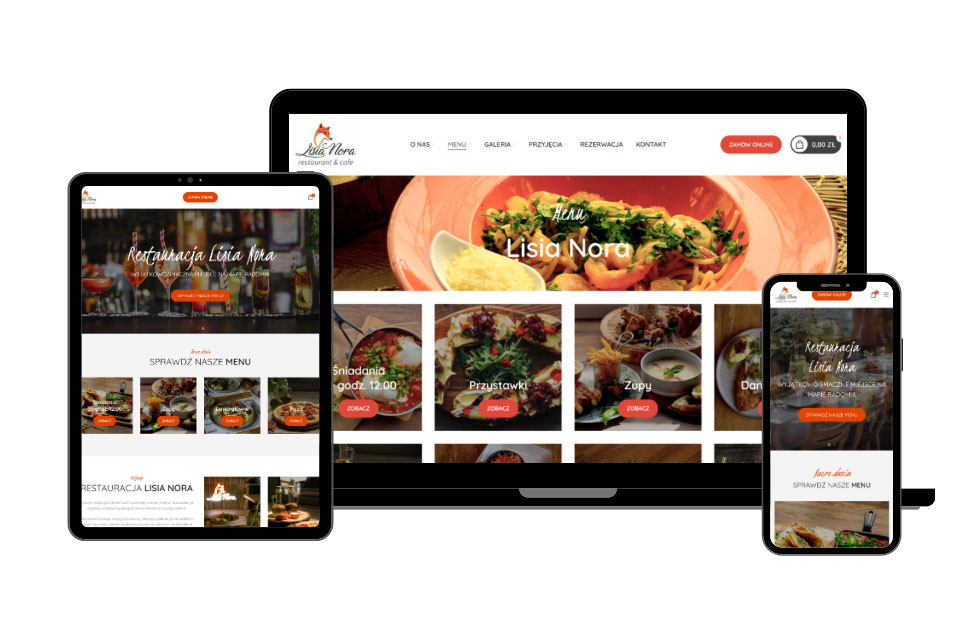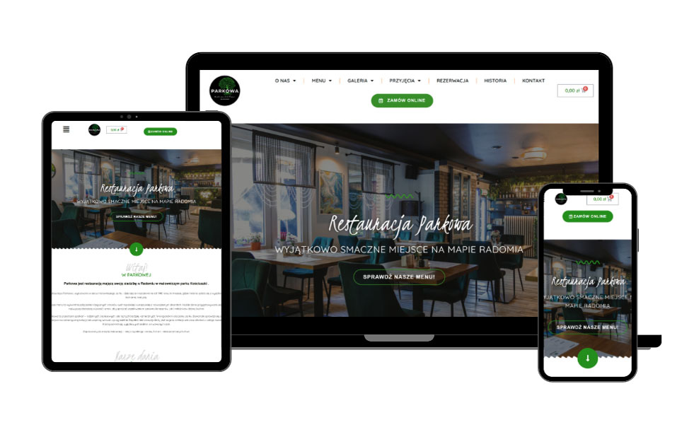 Dla Restauracji, łączącej tradycję z nowoczesnością, stworzyliśmy nowoczesny i atrakcyjny wizualnie projekt strony. Przyciąga on uwagę i prezentuje bogate menu kuchni polskiej i europejskiej, kładąc nacisk na pasję i świeże składniki.
