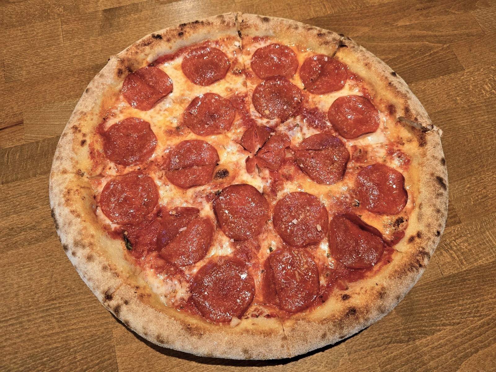 Sos pomidorowy San Marzano, Mozzarella Fior di Latte, salami, Parmezan